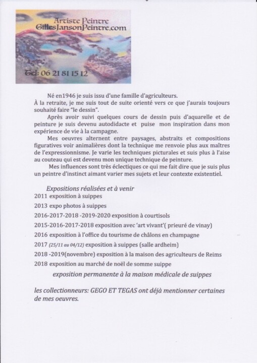 après avoir suivi quelques cours de dessin puis de peinture je suis devenu autodidacte et puise mon inspiration dans mon expérience de vie à la campagne